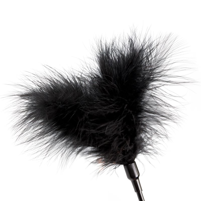 The possibilities are endless! The eye mask blocks out light, which heightens the other senses for an exciting bondage experience. Because of the elastic strap is always fits perfectly. Use the tickler to tease your partner and to stimulate the nerve endings