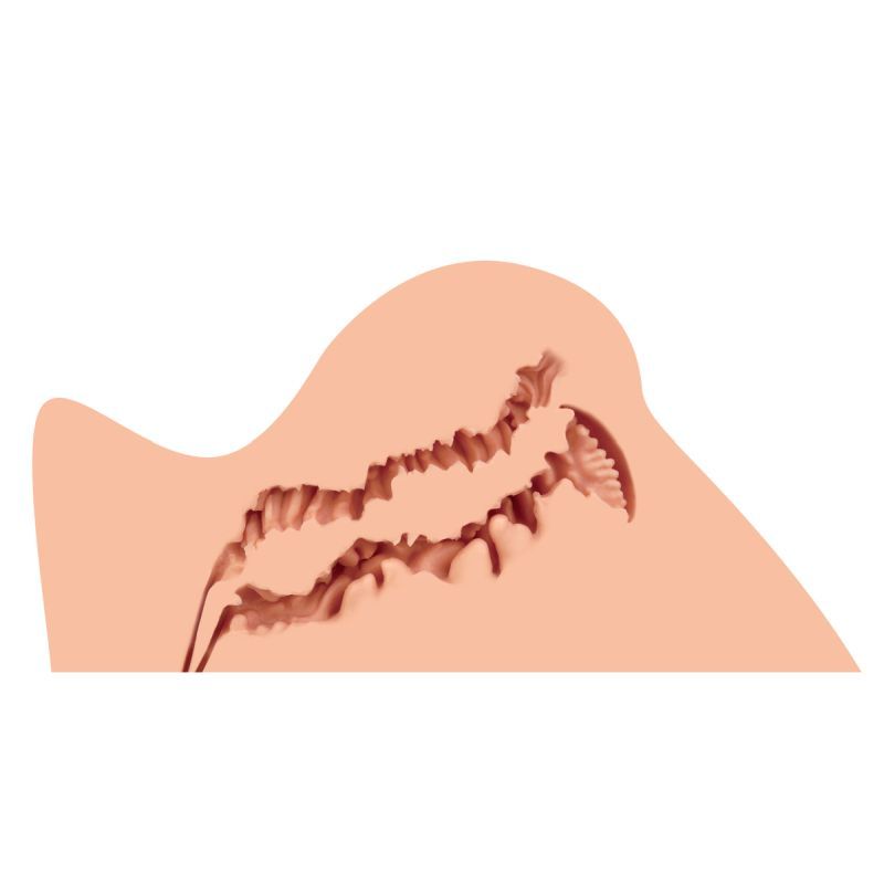 This rear entry style torso is designed as though two thighs are together and emphasises the vaginal design which slightly protrudes from between the buttocks.