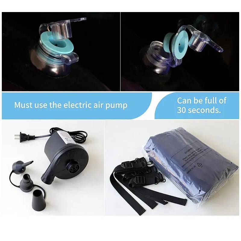 Inflates in 30 seconds with an electric pump (included), inflate until full for best effect. Manual inflation not recommended due to size.