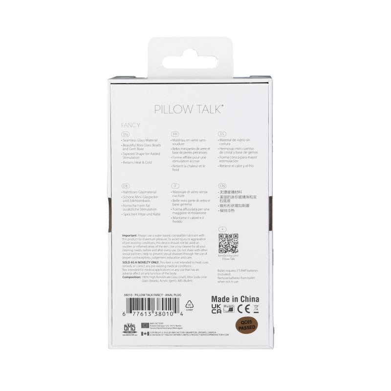 Pillow Talk Fancy Luxurious Glass Anal Plug w Clear Gem