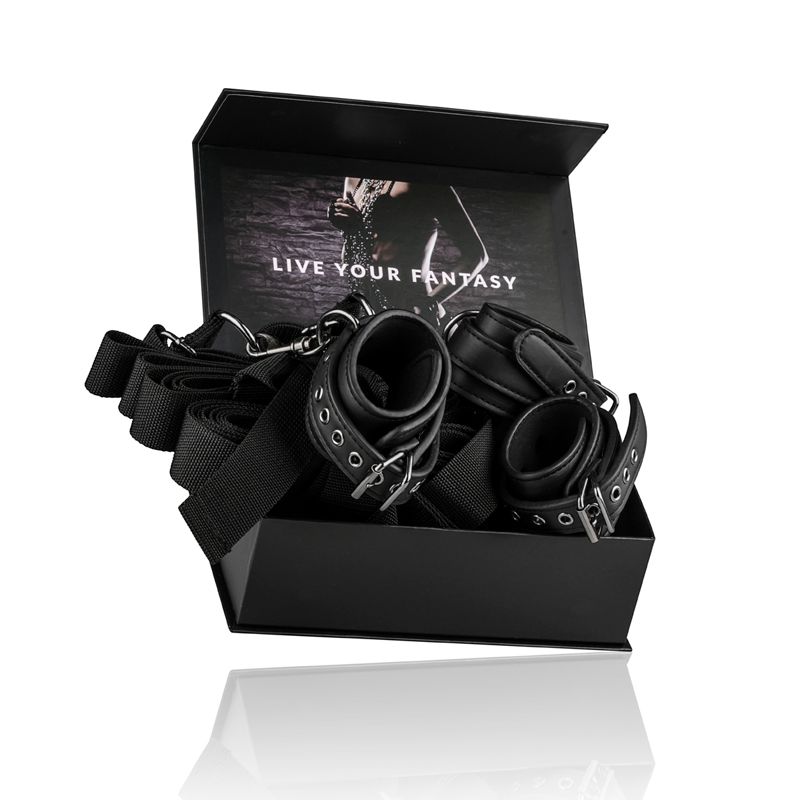 Make your bondage game even more exciting with this bed restraint system. Because of the adjustable straps, the system fits on any mattress.